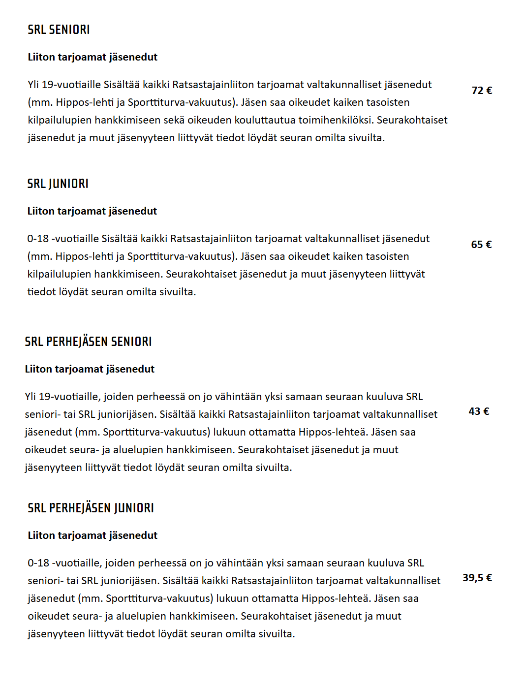 Liittymällä seuraan saat mm. Sporttiturva-ratsastusvakuutuksen, Hippos-ratsastuslehden sekä kilpailu- ja koulutusluvan. Star Riders -jäsenet hyötyvät alennetuista tuntihinnoista Tähtihetkessä. Tutustu jäsenlajeihimme ja liity osoitteesta https://liity.ratsastus.fi/